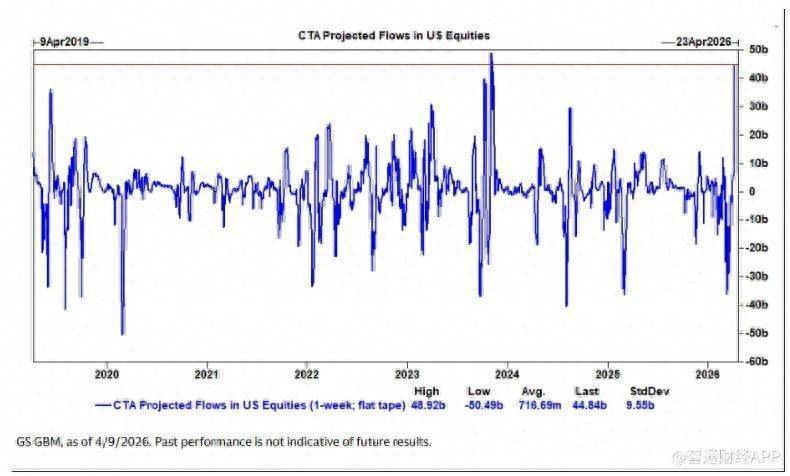 高盛交易部门数据显示,在过去一个月中,以趋势交易为主的商品交易顾问(CTA)累计抛售约480亿美元标普500期货。但这一趋势正出现逆转。模型显示,无论市场上涨或横盘,CTA在未来一周及一个月内均有望转为净买入。在最中性的市场情景下,未来一周潜在买入力度可达约450亿美元,接近历史高位。